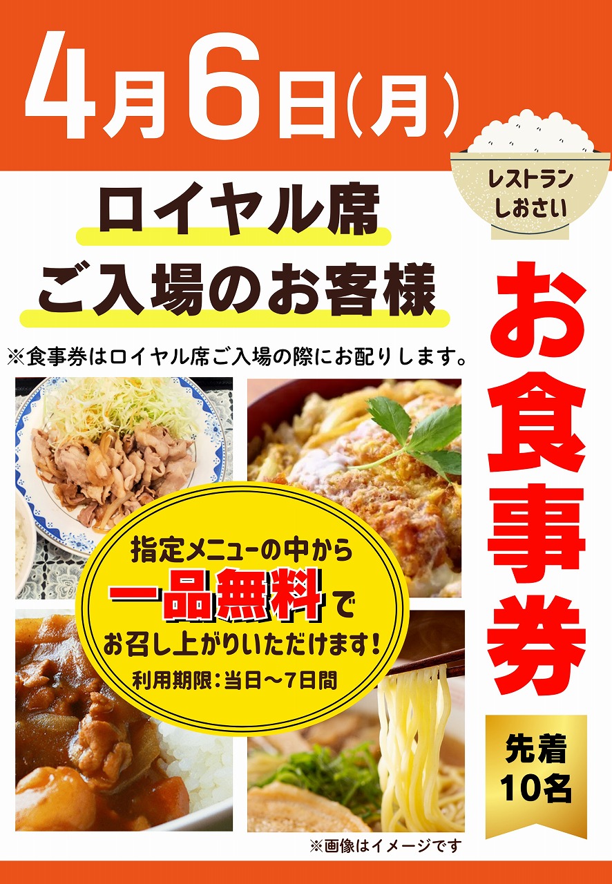 2026 年 4 月 6 日 ☆4月6日 ロイヤル席利用者ファンサービス☆